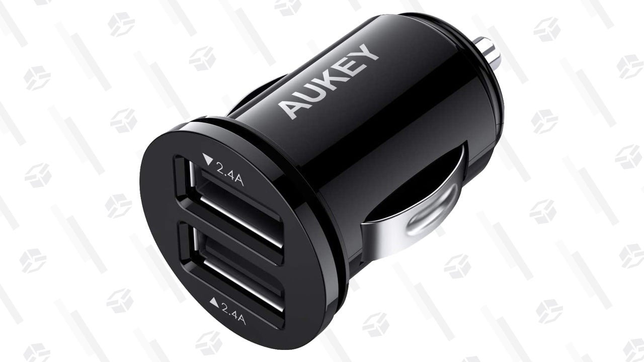 If you’re charging your phone in the car, you might need an adapter to turn the cigarette lighter into a power outlet. Like this ultra compact 24W car charger. It can quickly charge two devices at the same time, so both you and your navigator can top off your phones.