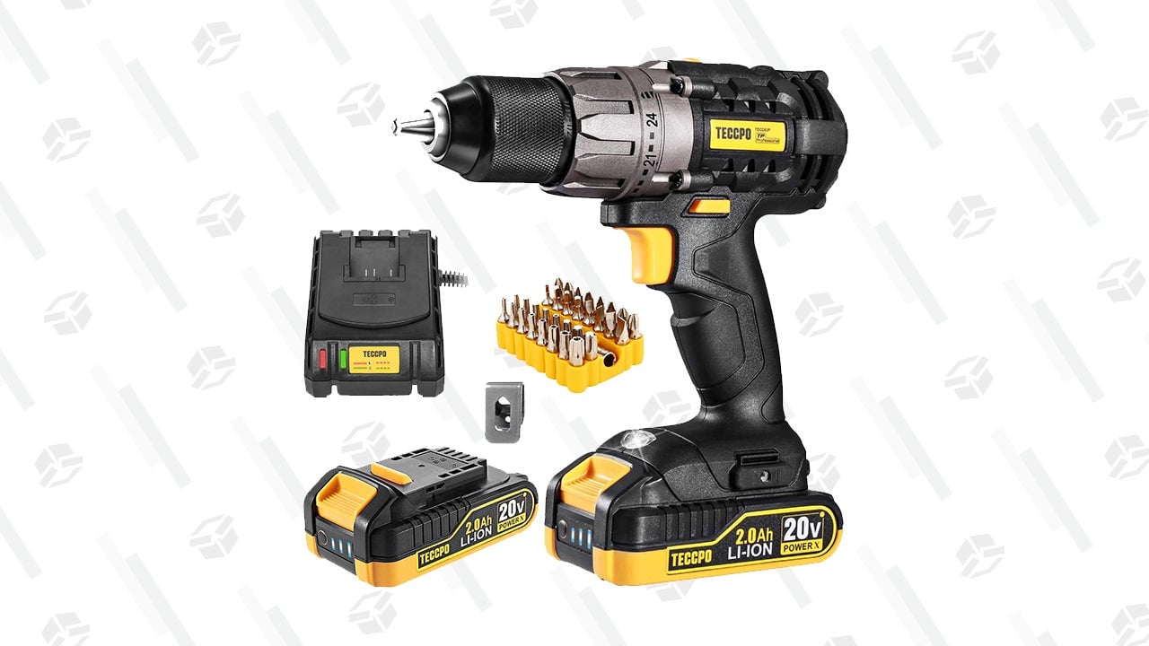 The Teccpo is a 20V 2000mAH large-capacity cordless drill. it has a 2A ultra-fast charger to keep the tool constantly running while managing the batteries’ temperature, keeping them cool consistently. This tool also has a powerful 4-pole copper motor delivering 530 in-Lbs peak torque, thus ensuring 25% more stability and long-time operation. It also features all-metal gears and a 1/2" key-less ratcheting chuck for maximum durability.