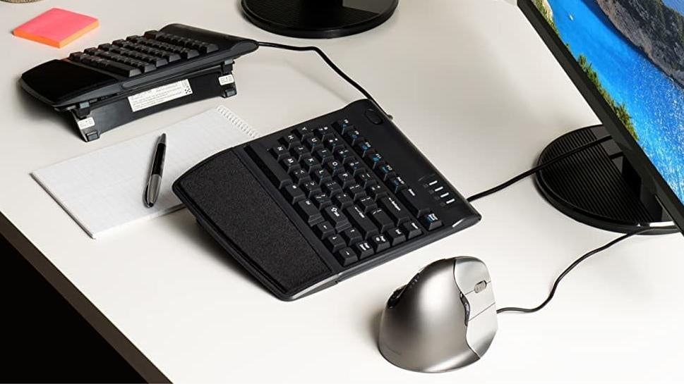 Among their top endorsements for ergonomic options is the Kinesis Freestyle2, a split keyboard that’s actually split, so you have a bit more wiggle room with how you position both sides of keys. Its keys are low-impact, and it has a zero degree slope, which will give your wrists some much-needed relief. Oh, and even though you may not be traveling or going outside much right now, its slim profile makes it easy to pack in a bag for a week away. At $115 right now from Newegg, it’s cheaper than many other keyboards in its class, so as long as you’re sure you’ll dig a mechanical keyboard, it’s a tough keyboard to beat if you’re not a fan of the Surface and Logi’s sloped designs.