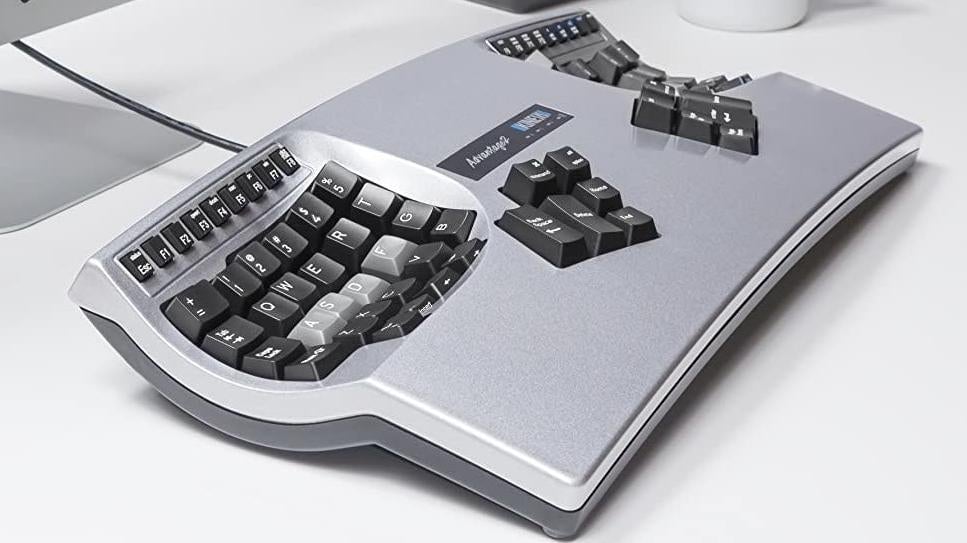 Don’t be fooled by its clunky looks—the Kinesis Advantage2 packs all the power of a mechanical keyboard in an ergonomic design that puts your wrist health first. Based on the IBM keyboard design of the 1960s, split keys and a scooped design keep your hands in a cozy position. It comes in a few configurations, with an option for either Cherry MX Brown switches if you prefer to torment your colleagues on every conference call, or silenced Cherry MX Red switches to keep things quiet. You won’t have to worry about compatibility, either, since it works with Windows, macOS, and Linux out of the box.