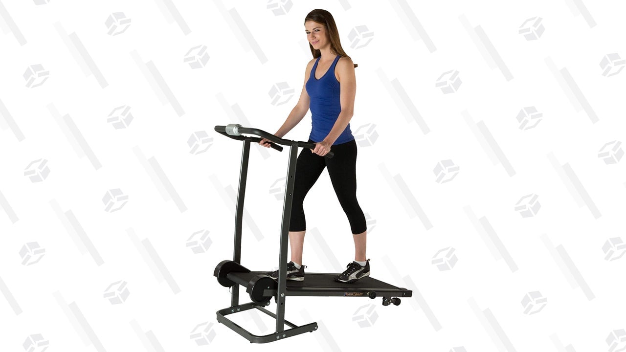 This manual treadmill doesn’t come with any kind of motors, fancy displays, or anything else you might find on the treadmill at the gym. What it lacks in bells and whistles, however, it makes up for in two key areas: price and noise. At just $200, it’s one of the cheapest treadmills you can get. And its cast-iron flywheels keep noise to a minimum. It even folds up, so you can put it away in a closet when you’re done with it.