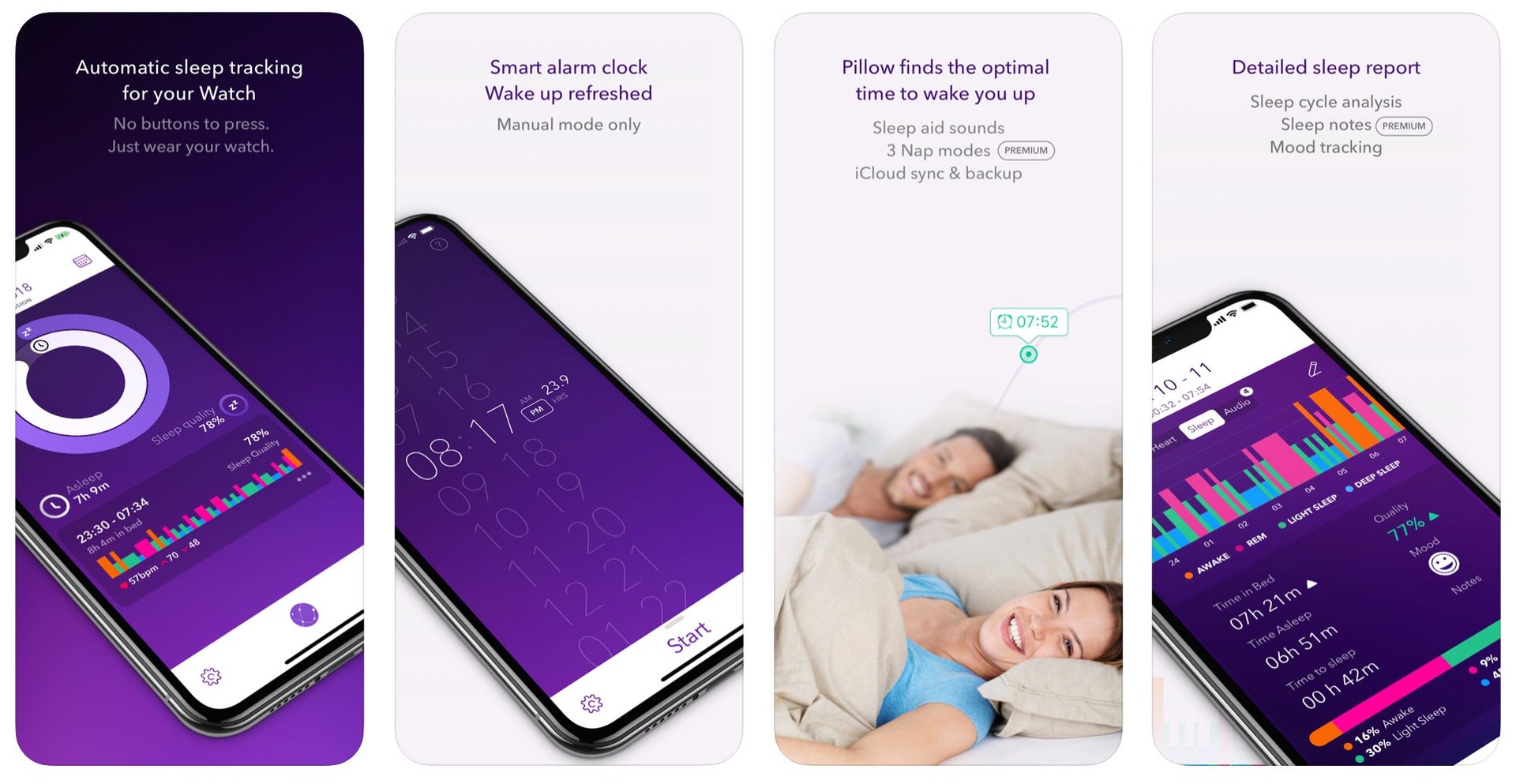 If apps are more your thing, take a gander at the Pillow Automatic, because here’s the highlight: It’s free. Well, kinda. If you already own an Apple Watch, this app is free and easy to use with your existing device. The catch: You have to sleep with your watch on. If you don’t, this app will track your sleep cycles with a series of detailed graphs so you can observe patterns over time. It also uses a “smart alarm” that will wake you up at the lightest sleep stage so you awake refreshed rather than groggy.