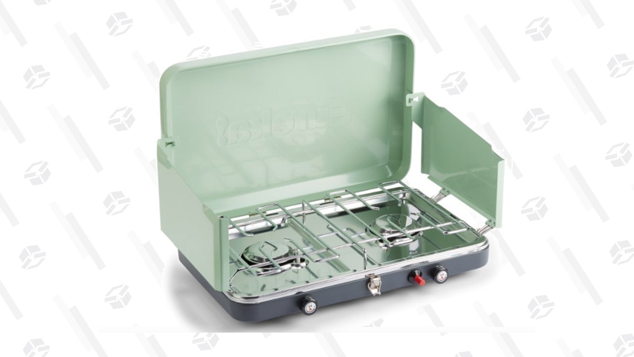 It would be fun to cook your meal on an open fire, but let’s get real: that sounds like a surefire way to be searching for an open Chinese restaurant around 8 PM when you’ve either singed your meal black or accidentally dumped it into the coals. Snag this 2 Burner stove by Eureka that boasts ample cook space and a precise dial that helps you adjust simmer control. Plus, it’s affordable.