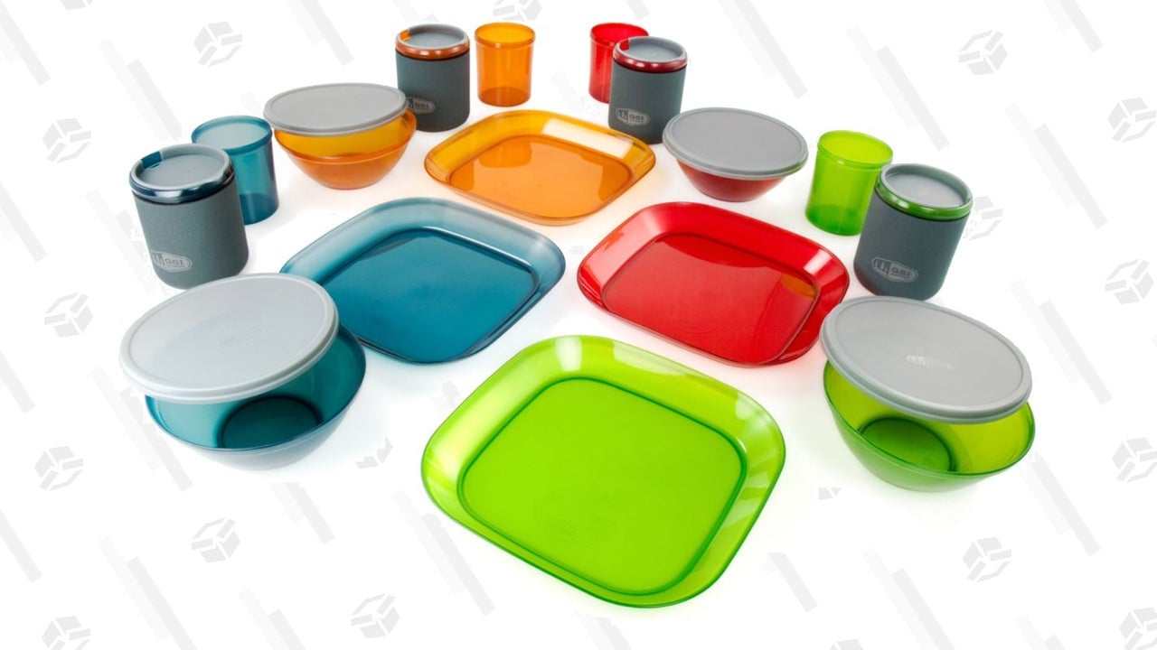 Sure, you could bring some from home but who wants to break Grandma’s china around the campfire? We need some dishes and I can think of no better set than this BPA-free, completely recyclable set by GSI. Each person gets a mug, a glass, a plate, and a bowl, so you’ll have plenty of space for all the calories you’re about to consume.