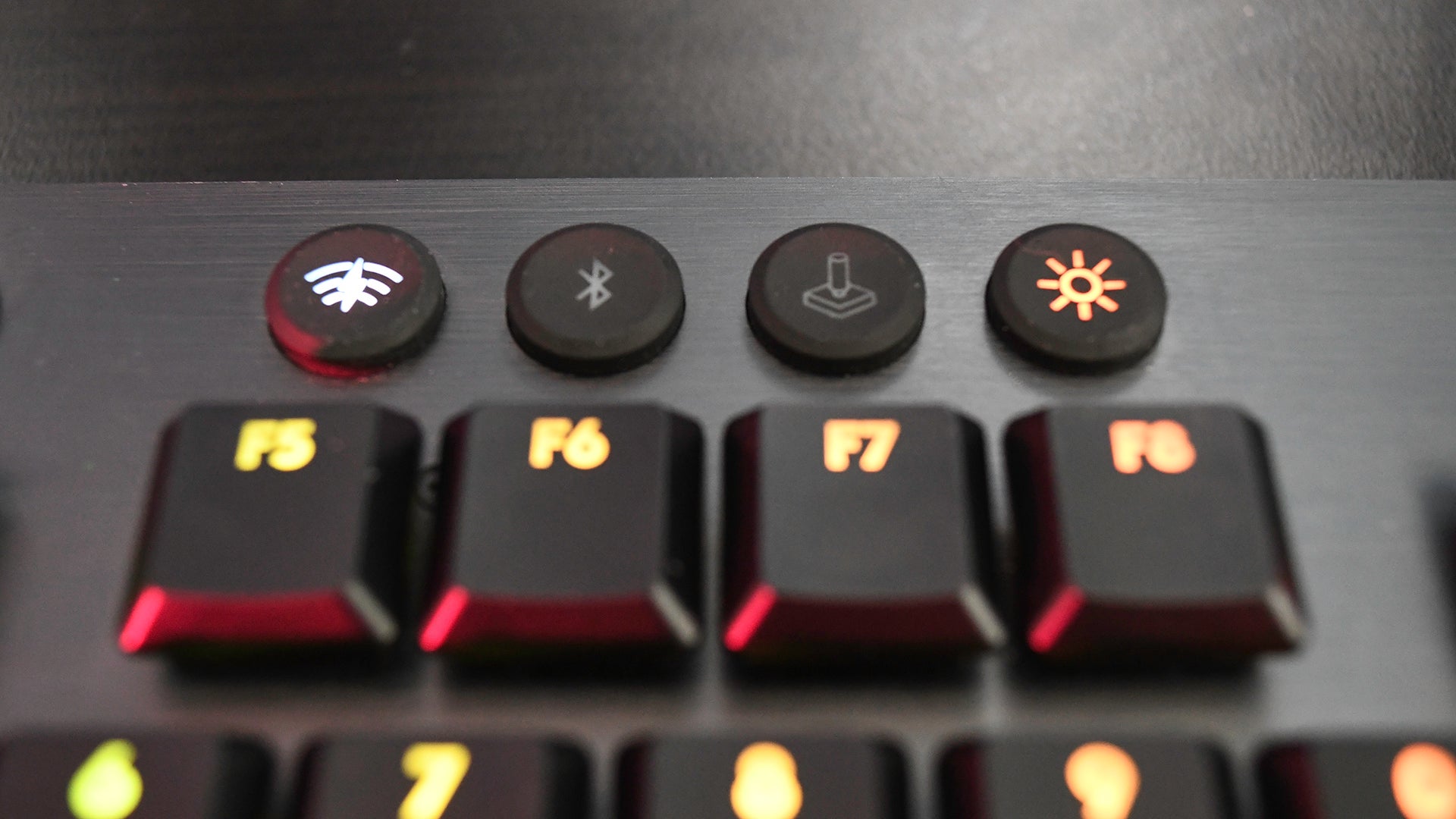 What sets the G915 apart from my previous Logitech keyboards for me is its multiple wireless modes, with convenient buttons to switch between them. The main connection is the proprietary Lightspeed dongle. This is the ultra low-latency connection you’ll want if you’re using it on a gaming PC, as I am. Then there’s the standard Bluetooth. (Side note: There is a wired version of this keyboard that’s slightly cheaper if the wireless aspects don’t interest you.)