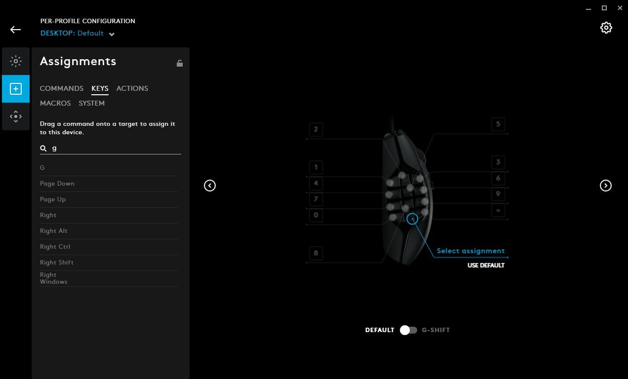In G Hub, you can’t just assign a shortcut by pressing the keys you want to assign like how every OTHER shortcut mapping program works. Instead, you have to search for a key or combination of keys from a list, then click or drag that onto the button you want to assign it to. And if you want to create a complex shortcut like Ctrl + Shift + Insert or whatever, too bad. It’s not on the list.