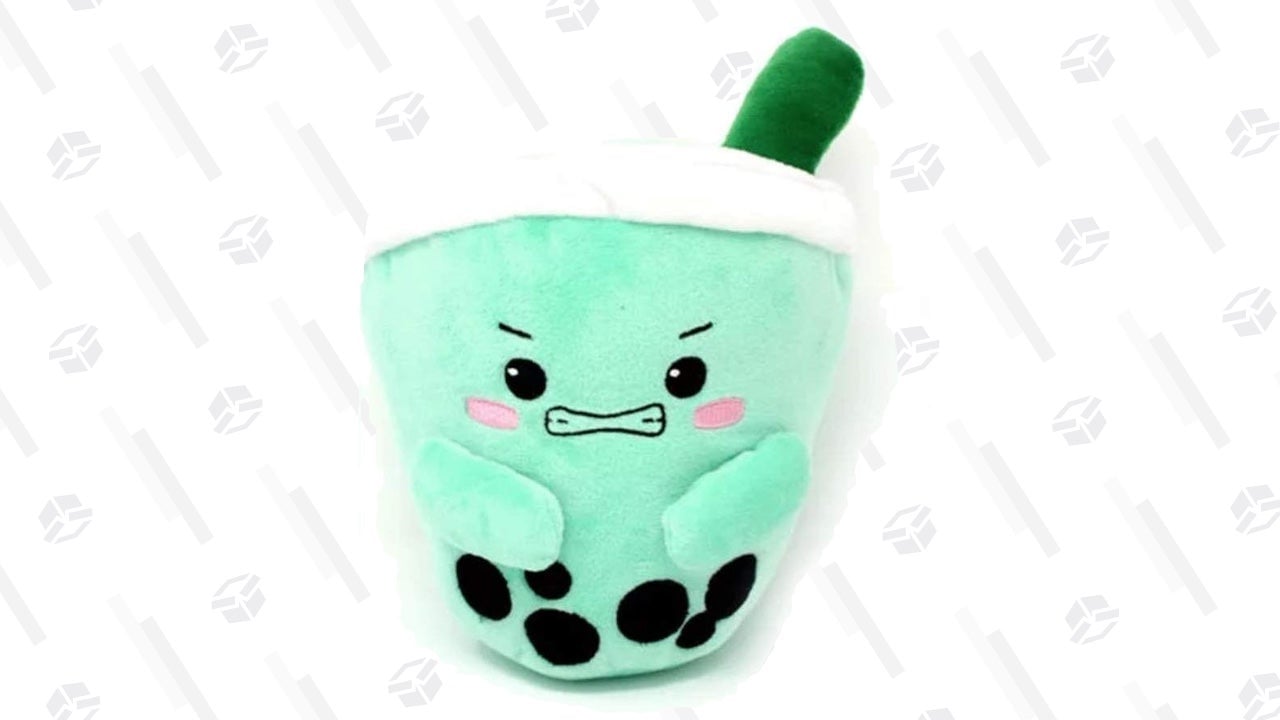 Not only can you drift to sleep in the glow of boba, you can also snuggle with a bubble tea plushie. I’m partial to the smiling pink and light brown milk teas, but there’s also an angry orange one and a grimacing green one.