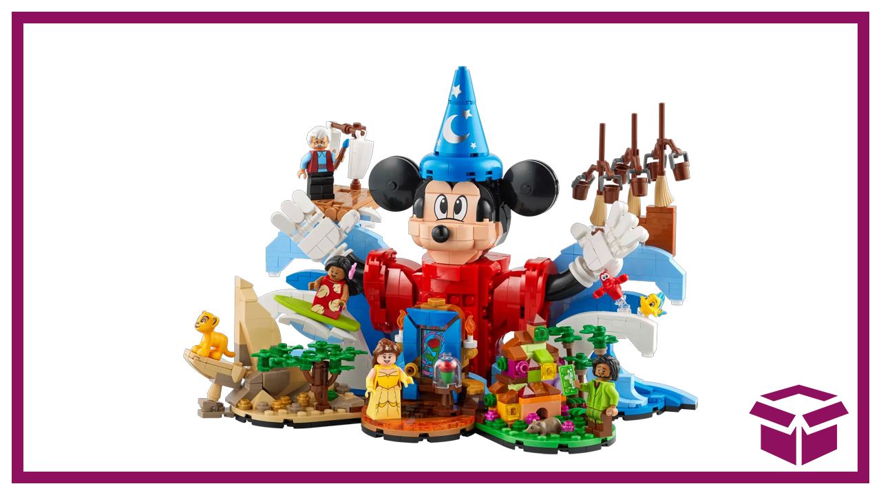 This charming set is perfect for Disney fans of all ages, featuring iconic Disney elements such as Simba on Pride Rock, Belle in the Beast's castle, and more. At the center of it all is Mickey Mouse himself in his iconic look from Fantasia, complete with the magic brooms carrying buckets of water.