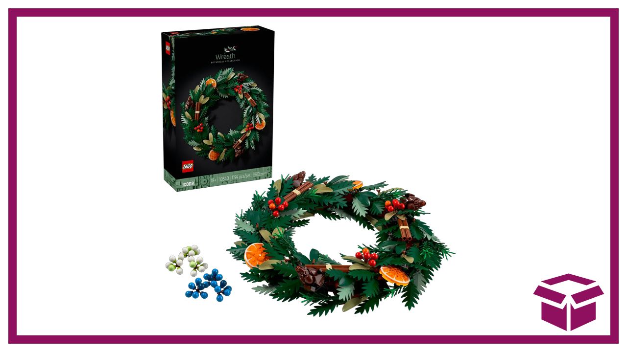 Celebrate the season with the LEGO Wreath set. This festive set features a beautifully detailed wreath with mistletoe berries, orange slices, and cinnamon sticks, along with vibrant green foliage that can be customized to suit your holiday decor—a delightful addition to any Christmas collection.