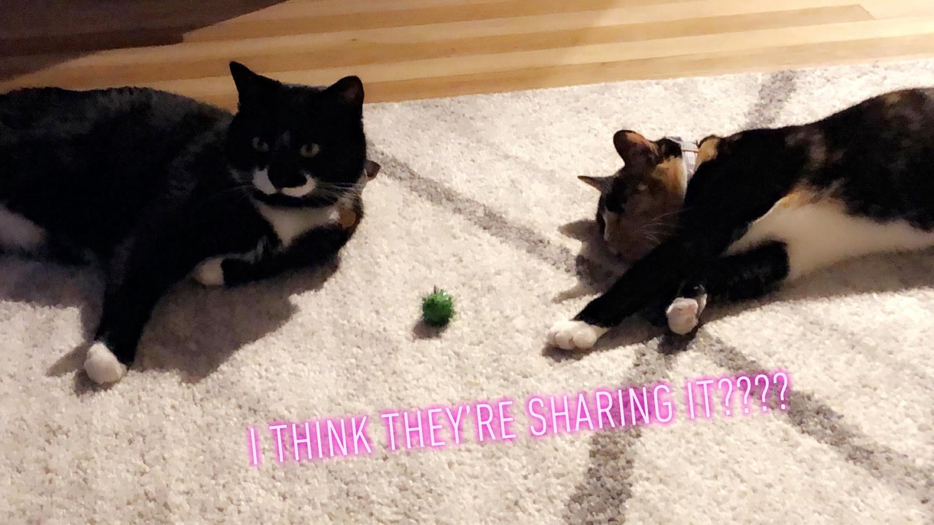 I first realized Luna loved to play when she stole a hair tie, right off of my wrist, and started launching it around the room. Since she was so happy with hair ties, I gave her all of mine—until I learned from my veterinarian best friend, Dr. Courtney Zinna, that hair ties are horrible toys for cats. (They can eat them, by accident or on purpose, which can cause a blockage that might require immediate emergency surgery.)