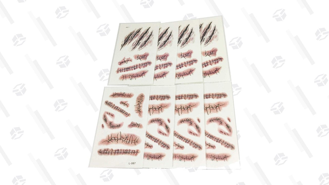 Just in time for Halloween are these fake bloody wound and scar tattoos that you can stick all over your body—and even make someone do a double take. If you’re still looking, the tattoos make a very easy Halloween costume. Just apply the tattoos on your arms and face, wear tattered clothing, smear on some pasty white sunscreen, and you’ve got yourself a zombie. You can also use these tattoos with your preschooler all year long for pretend “boo boos.”