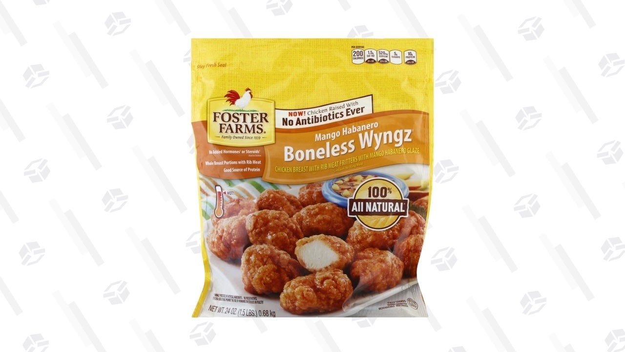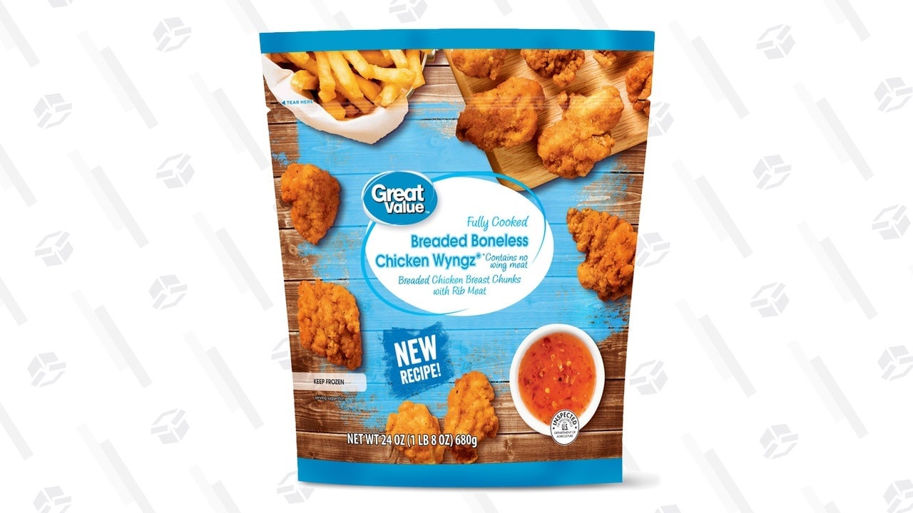 Chris is a reserved guy who rarely “flips out,” but he was flipping out over these, the Wal-Mart house brand of “Wyngz” (see above). This was the most successful chicken product we tried, with the best overall breading. His exact quote: “I would believe you if you told me that these had come out of the deep fryer at any major fast food restaurant. Not as perfect as a Popeye’s breaded chicken tender. But they were awfully close.” (This is astonishingly high praise as we are both Popeye’s aficionados!)