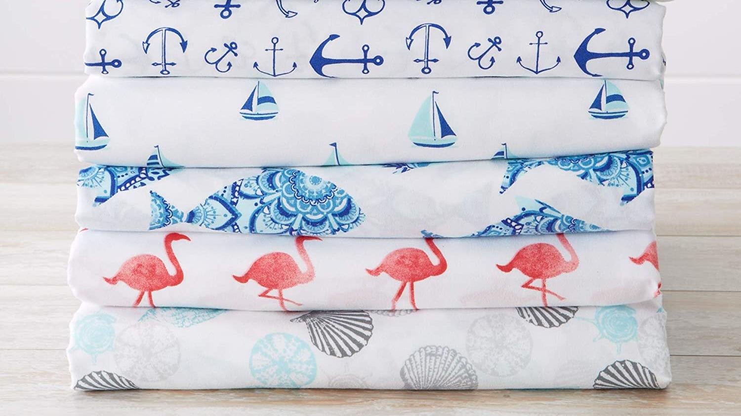 Well, not literally because of woof, sand in the bed, no bueno. But these sheets, with their jaunty little palm trees, can bring a bit of the beach to bed with you. These sheets are made from quick-dry microfiber, and are super lightweight, so they’re perfect for summer. And, if palm trees aren’t your thing, sets are available in other summery patterns like flamingos, sailboats, or seashells.
