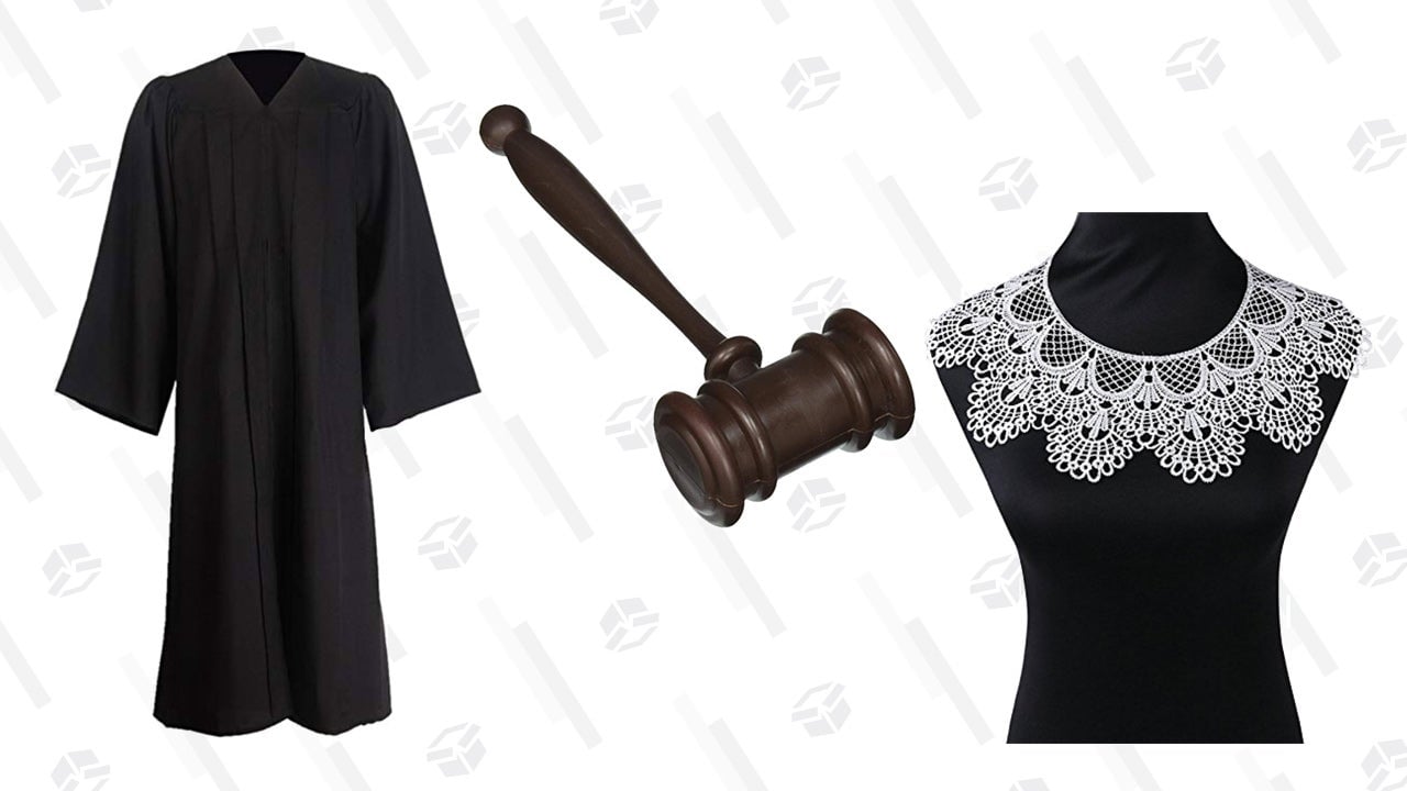 I know that Halloween is over, but it’s never too early to plan for next year. Dress like a badass Supreme Court Justice with this black robe, lace collar, and gavel.