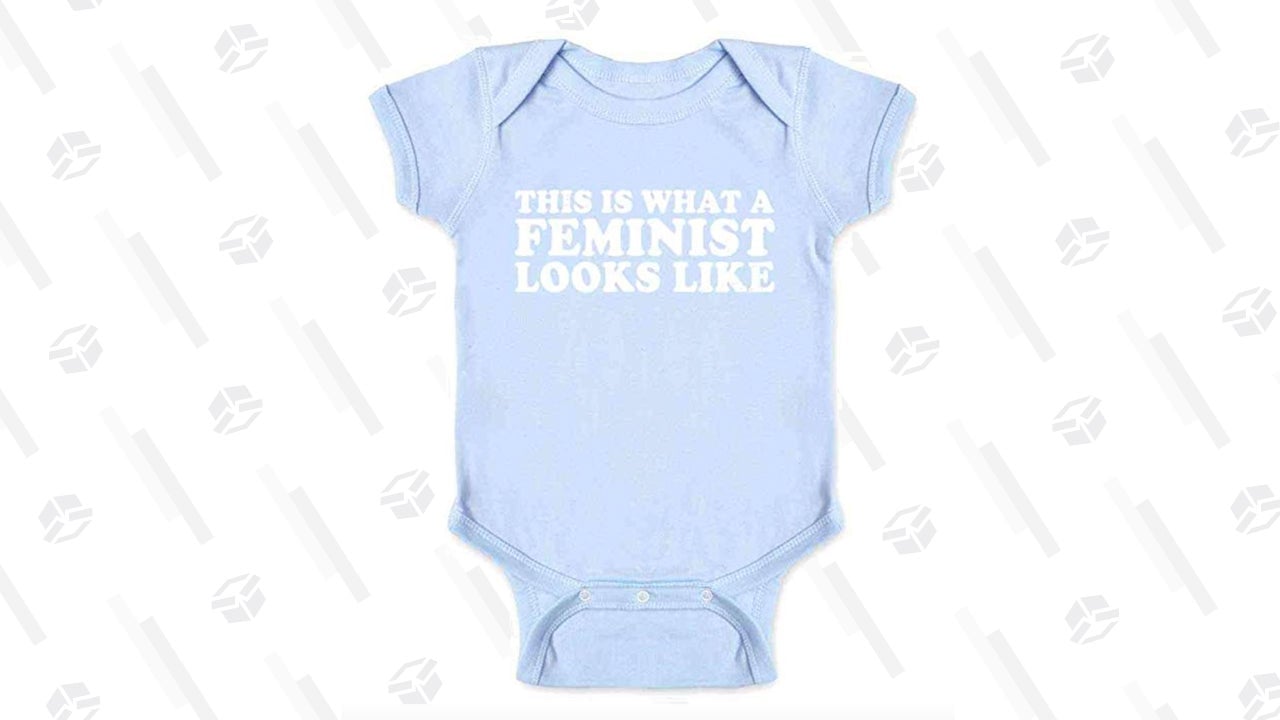 Even babies can make a statement with this unisex “This Is What a Feminist Looks Like” onesie. Available in sizes 6 months to 24 months, you can pick one up in every size.