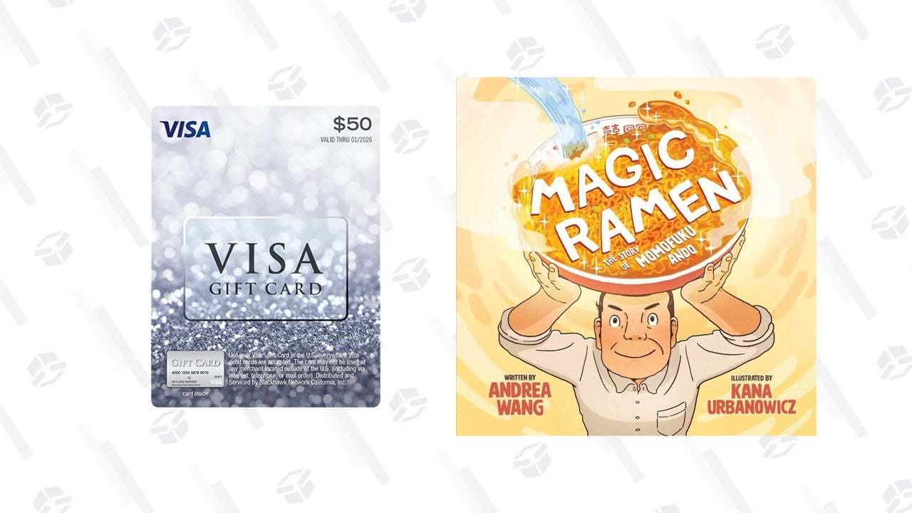 For instance, Magic Ramen, a picture book biography about the inventor of instant ramen, or Minette’s Feast: The Delicious Story of Julia Child and Her Cat can be paired with a gift certificate to a local restaurant, a food delivery service, a grocery store, or another purveyor of food.