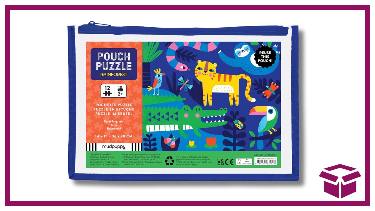 A beginner-friendly puzzle that comes in a handy zipper pouch, making it perfect for travel or quiet time. The bright, kid-friendly artwork keeps toddlers engaged while helping develop coordination and focus.