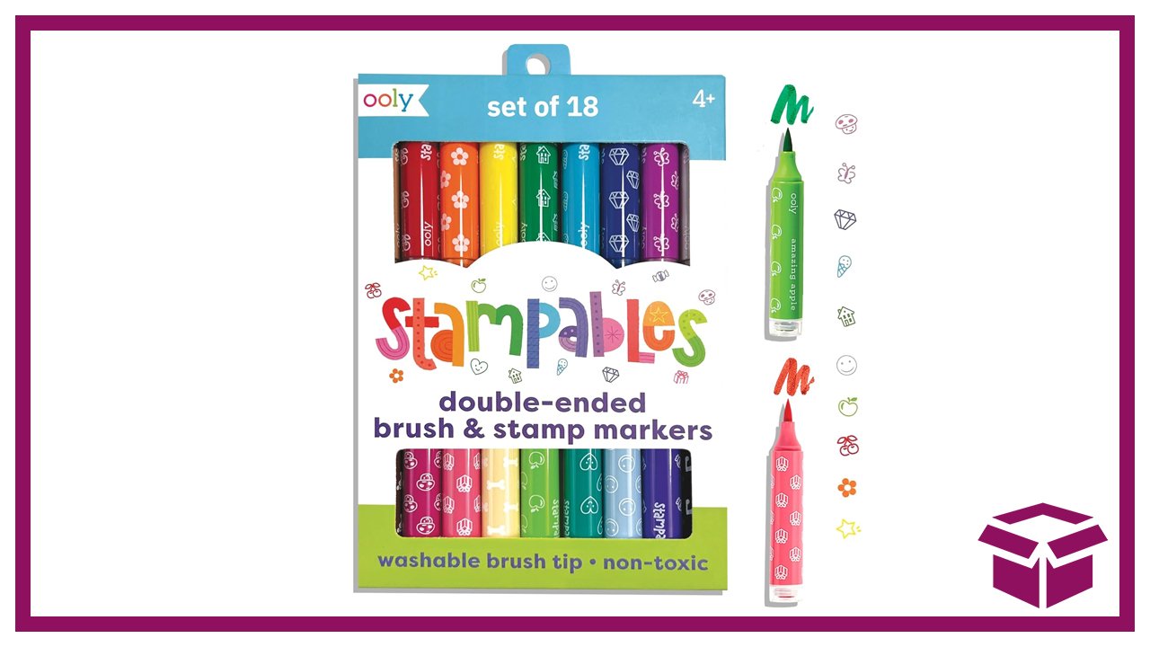 These markers combine coloring and stamping in one, letting kids create fun shapes and designs with ease. They’re perfect for creative play and a great mess-free-ish option for arts and crafts time.