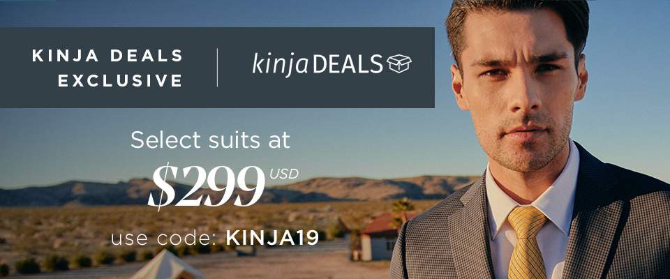 You can grab any of these suits for just $299 with promo code KINJA19. Or, if you want your suit to blend in some ultra-premium fabrics like cashmere or ultra-soft super 150s wool, you can get any of these eight Luxury Collection suits for $399 with the same code.