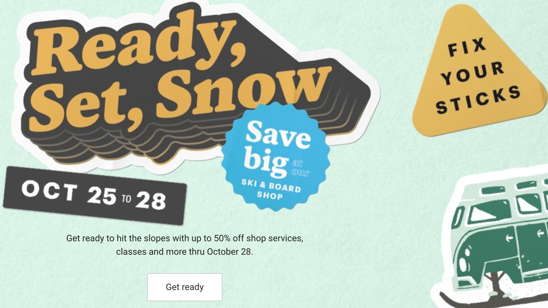 It’s that time of year. Time for snow sports, of course! And REI is ensuring you’re prepared to hit the slopes with a blizzard of snow-centric deals at their Ready, Set, Snow Event. Right now, you can take 50% off all ski and board shop services; 20% off one class, day tour or event (with code SNOW4DAYS19); 25% off waxing & tuning products; and much more. So shop now, before all the savings melt away.