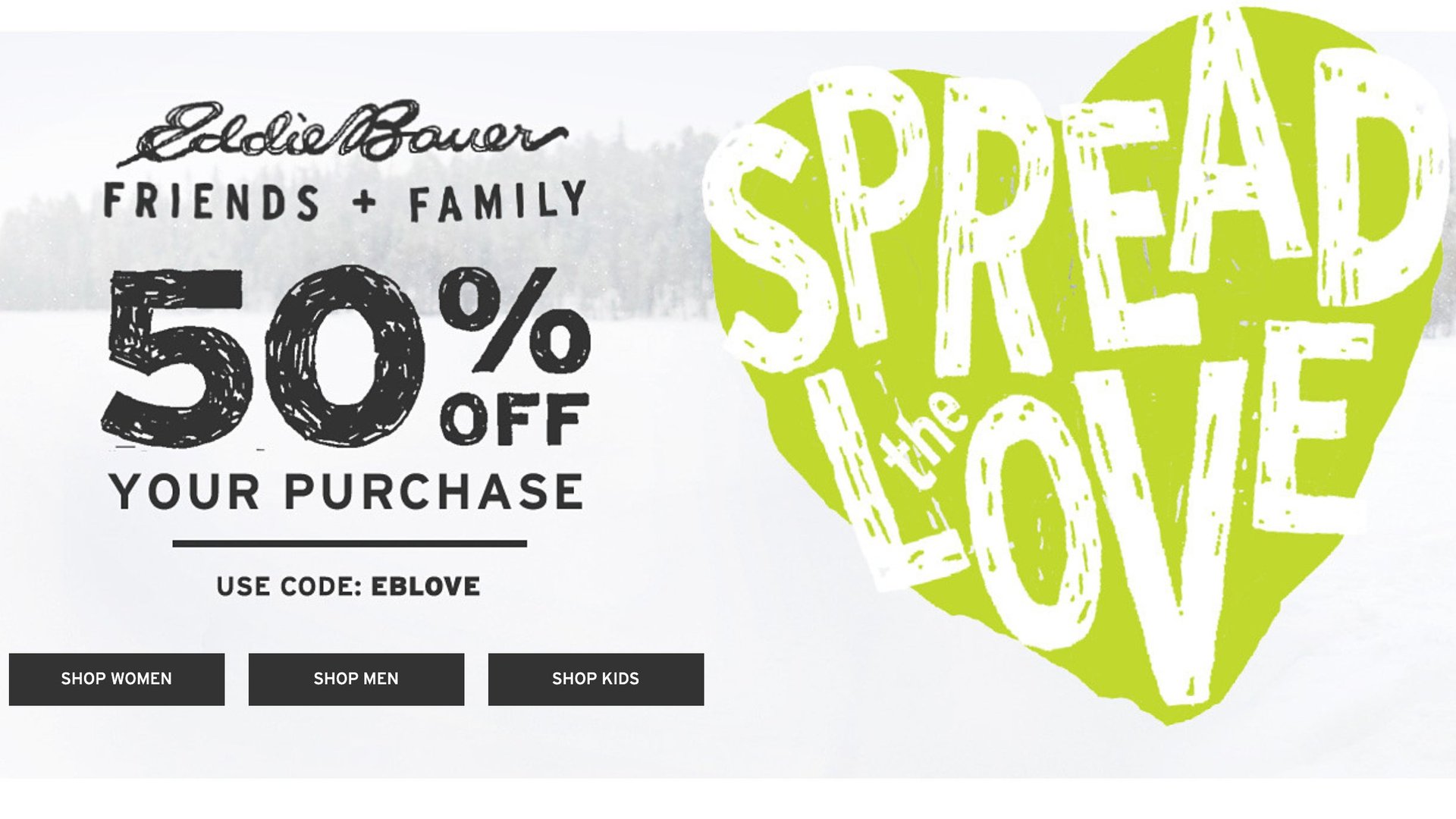 Offer excludes sleeping bags, tents, and non-Eddie Bauer brand products, previous purchases, gift card purchases, credit card payments, taxes, shipping, or other fees.