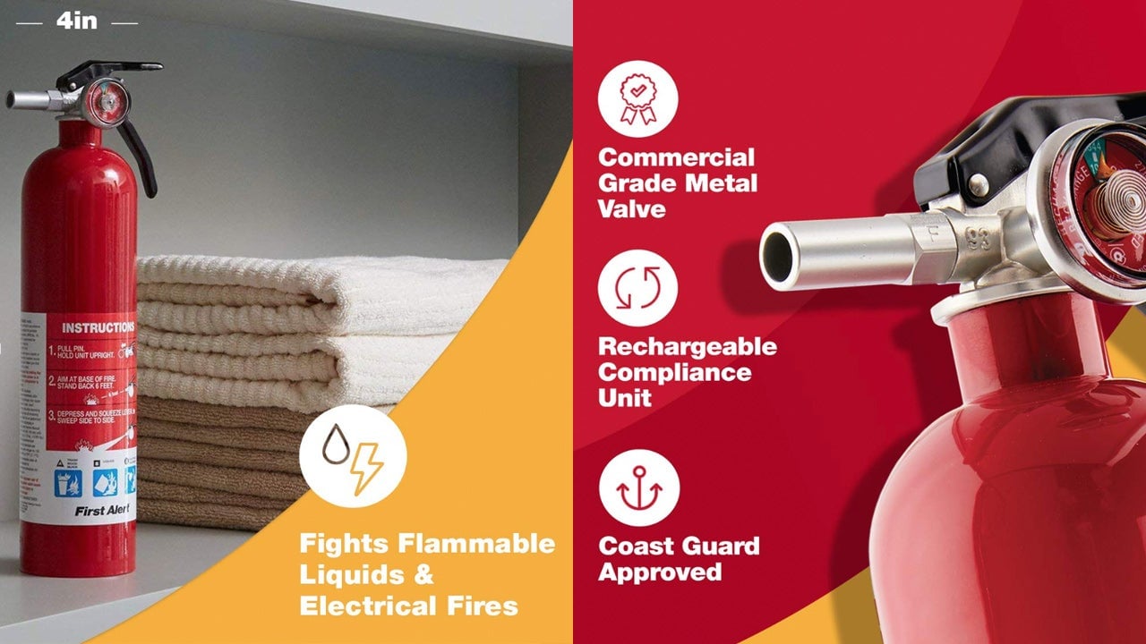 In the event of a fire (big or small), you’re going to want a fire extinguisher in your home. Get a First Alert Standard Home Fire Extinguisher for $16 from Amazon. It is a multipurpose fire extinguisher that is good for wood, paper, trash, plastics, gasoline, oil, and electrical equipment fires.