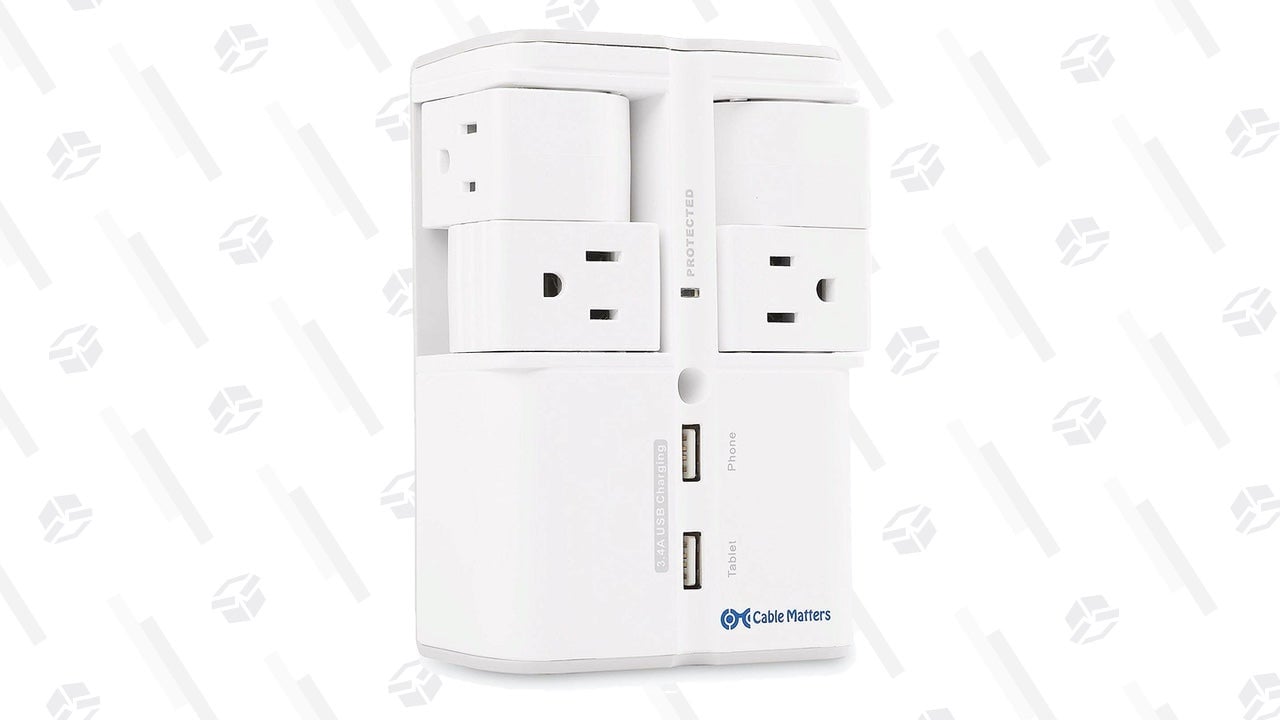 With this four-outlet surge protector from Cable Matters, you can actually put those outlets to use, without compromising your furniture placement. Four swiveling plugs let your cords run out to the side, rather than straight out from the wall, and a couple of USB ports are onboard as well if you want to use this in an office or nightstand environment.
