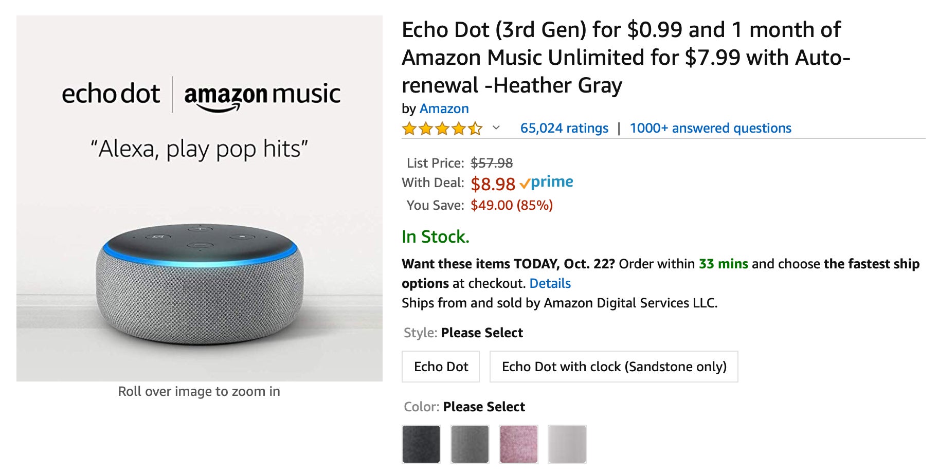 If you plan on getting one of these, you can also get an Echo Dot (be it your first or fifth) for only $9, plus a month of Amazon Music.