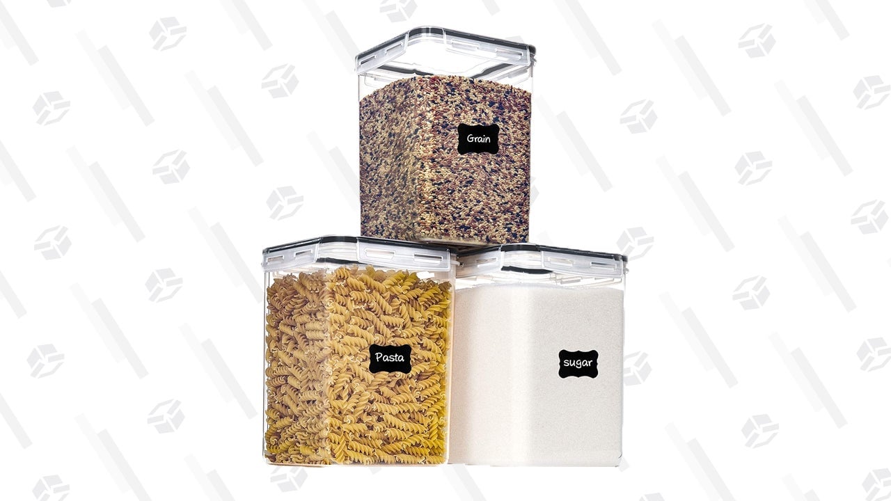Ditch the boxes and bags your cereal and sugar come in. These see-through containers are 5.2L (or 4.7 quarts for us Americans). Put whatever your need in them. Coffee beans, tea, oatmeal, fingernails—whatever fits. They come with a sheet of cute chalkboard labels so your kitchen pantry can looks like everything posted to Pinterest. That sounds like a dig, but it isn’t. Honestly, I find that shit cute as hell.