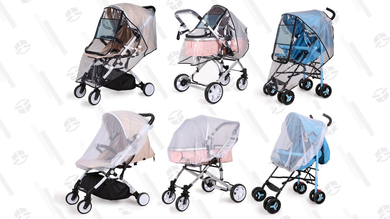 A clear stroller canopy — you’ll want to find the right size for your particular stroller — drapes over your stroller so that your child stays dry inside but can still see everything outside. My kids got a big kick out of sitting inside our stroller canopy since they could see the raindrops fall without actually getting wet. Plus, the canopy shelters them if the weather is especially blustery.