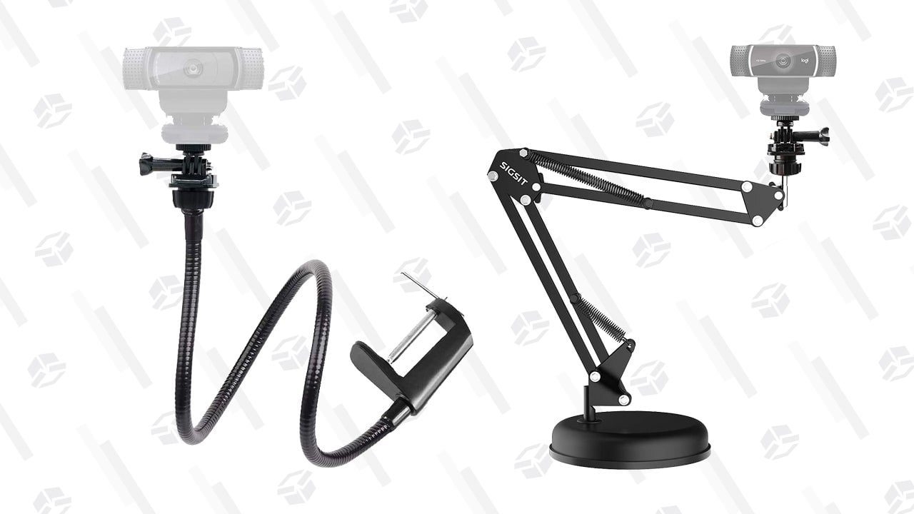 Webcams are basically always in a bad position. Either they’re looming down from a foot and a half above your eyeline, or they’re looking up at you like a cat begging for treats. Neither is very flatting for your face. An adjustable arm like this suspension scissor arm, or this flexible swivel clamp let you position the camera right where it needs to be to look right.
